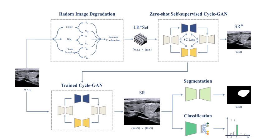 【1】Lin X, Zhuang X, Pan L, et al. ZSG-Net: A Zero-Shot Super-Resolution Guided Network for Ultrasound Image Segmentation and Classification[J]. IEEE Journal of Biomedical and Health Informatics, 2025.